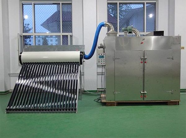 熱泵助推式太陽能烤房主要由太陽能空氣集熱器、空氣源高溫熱泵、智能化烤房系統三部分組成。通過太陽能空氣集熱器對空氣進行加熱,利用循環風機通過管道將高溫空氣傳輸到烤房在烤房內通過太陽能空氣集熱器對   空氣進行加熱,利用循環風機經過管道將高溫空氣傳輸到烤房內;通過溫、濕度感應器檢測,根據所測溫、濕度和干燥工藝,由智能化控制器控制空氣源熱泵的啟、停,排濕門的開、閉、實現全自動干燥。